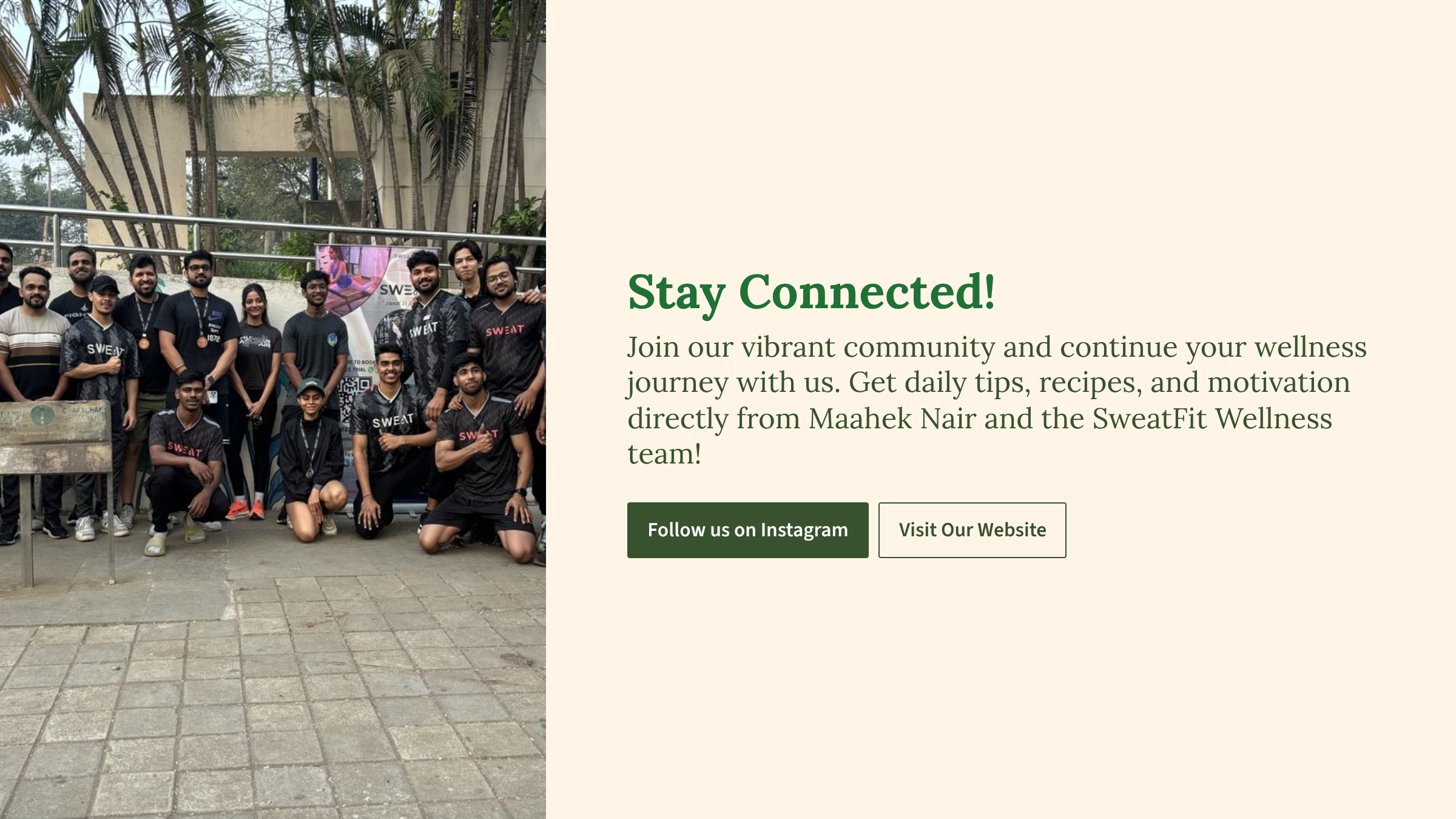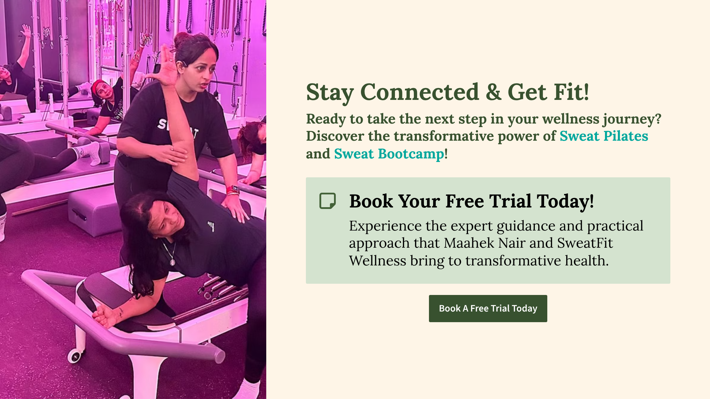 Download the Sweat Fit Wellness application to book a free trial, Track your progress, Access free mobility and home workout routines, Free recipes etc.