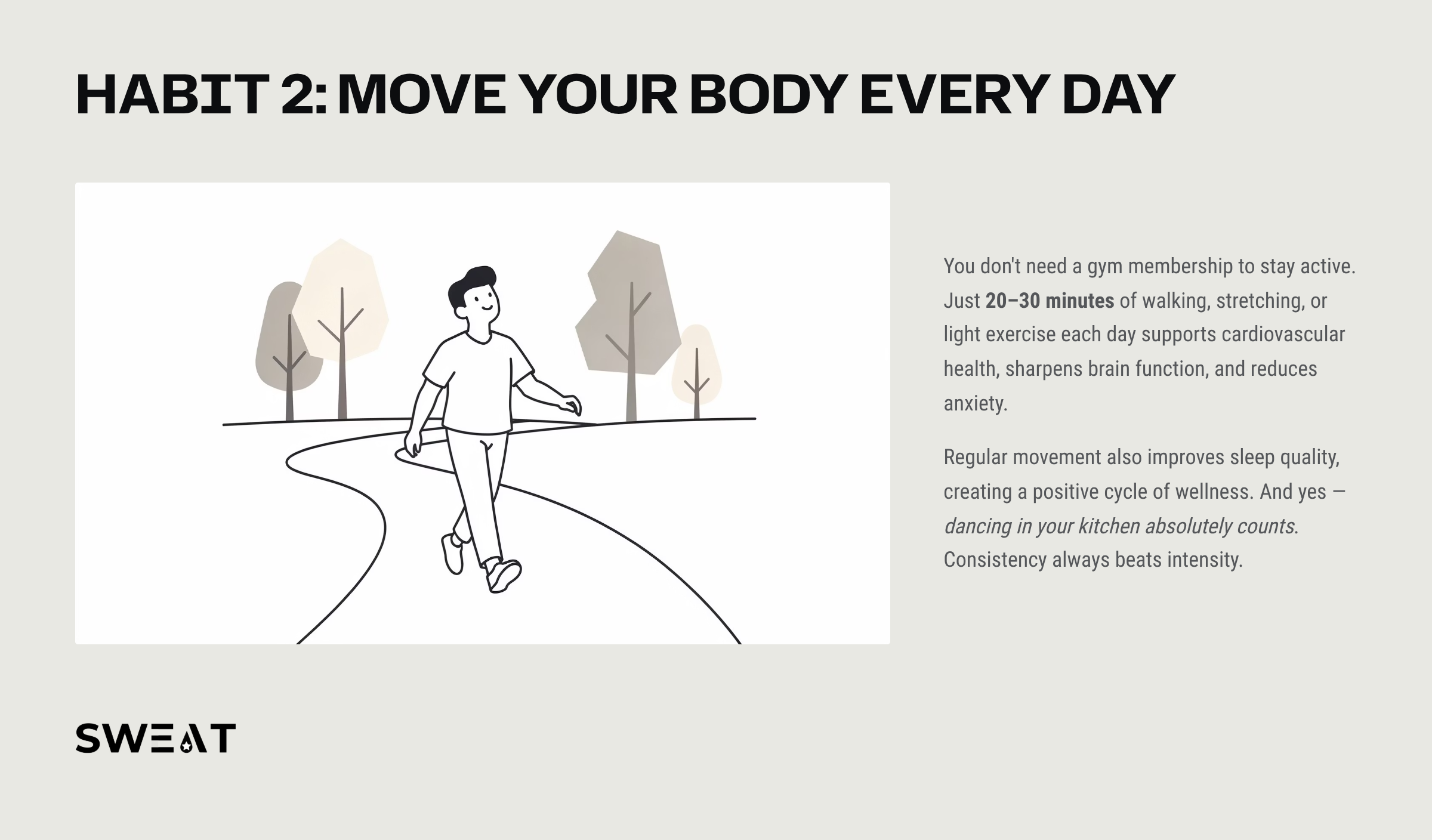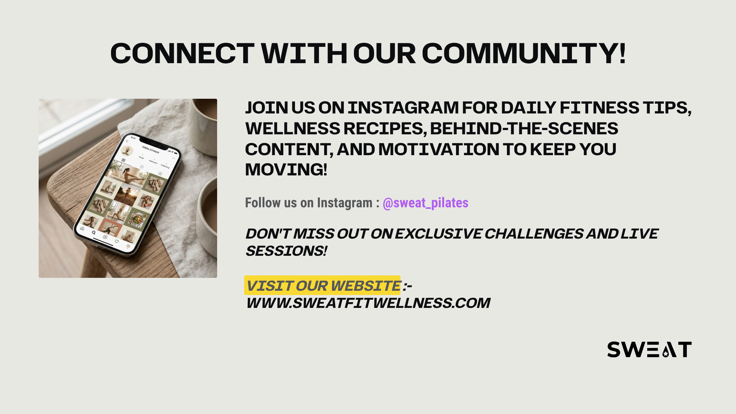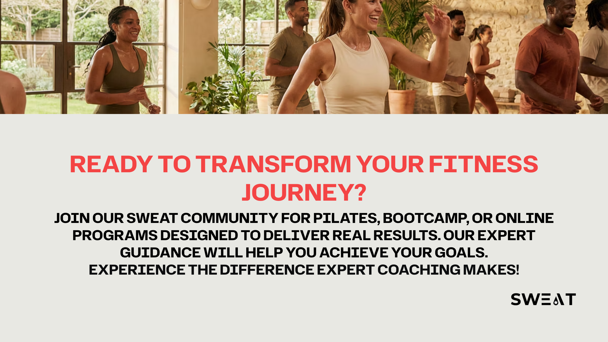 Download the Sweat Fit Wellness application to book a free trial, Track your progress, Access free mobility and home workout routines, Free recipes etc.